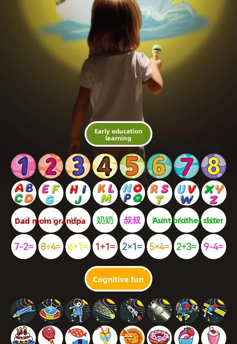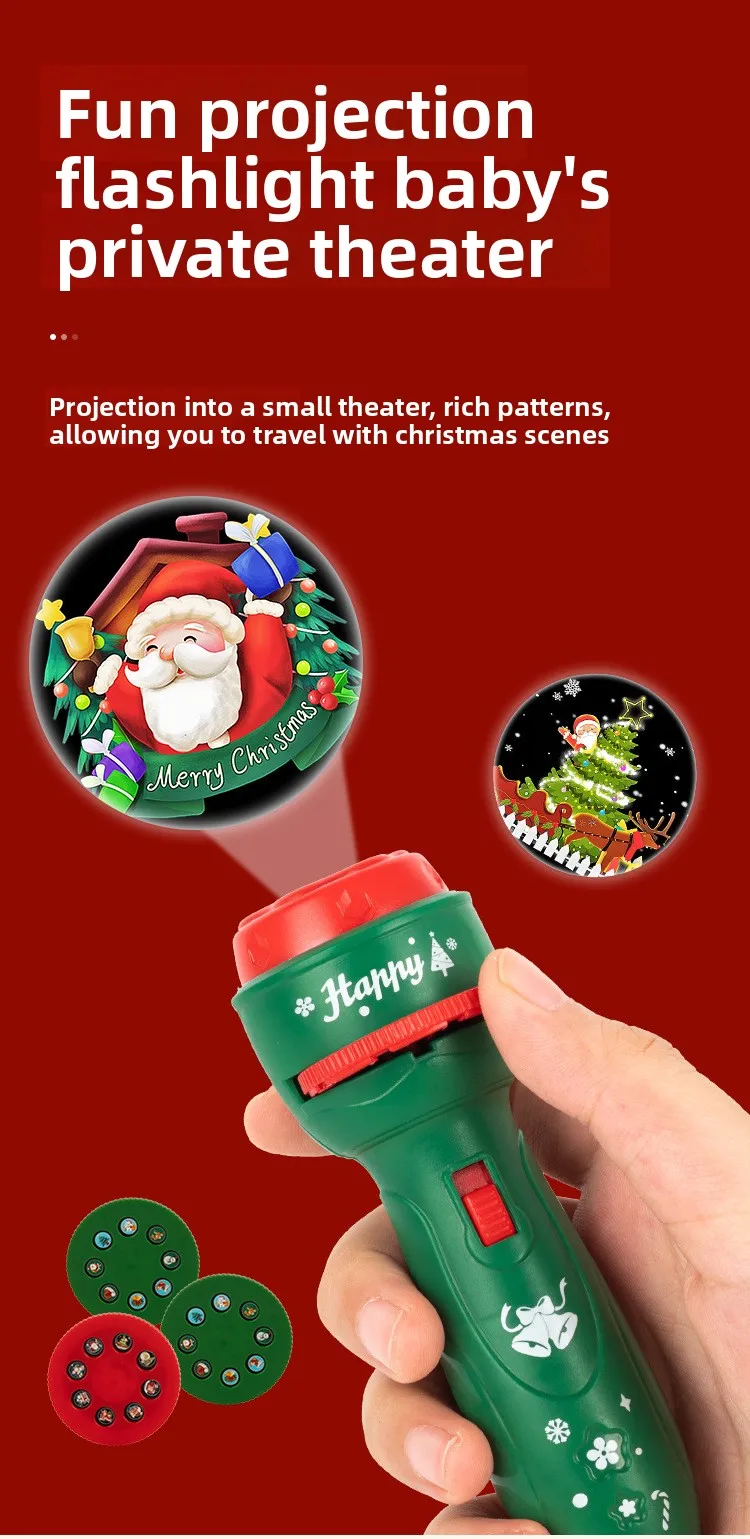 Projecteur LED de Noël - Lampe Torche avec 24 Motifs Festifs pour Enfants