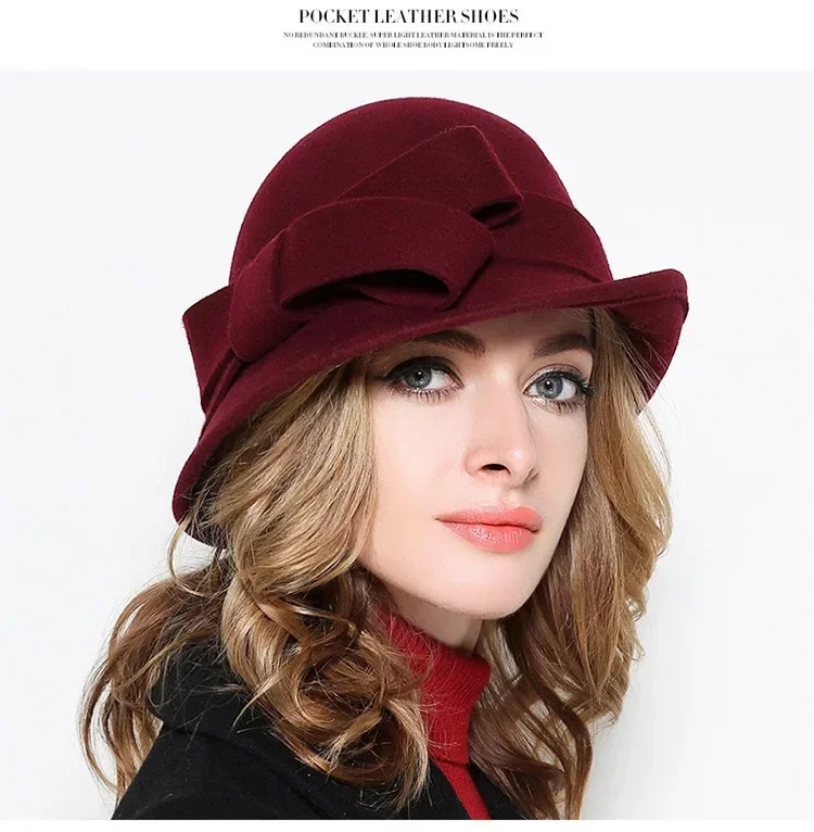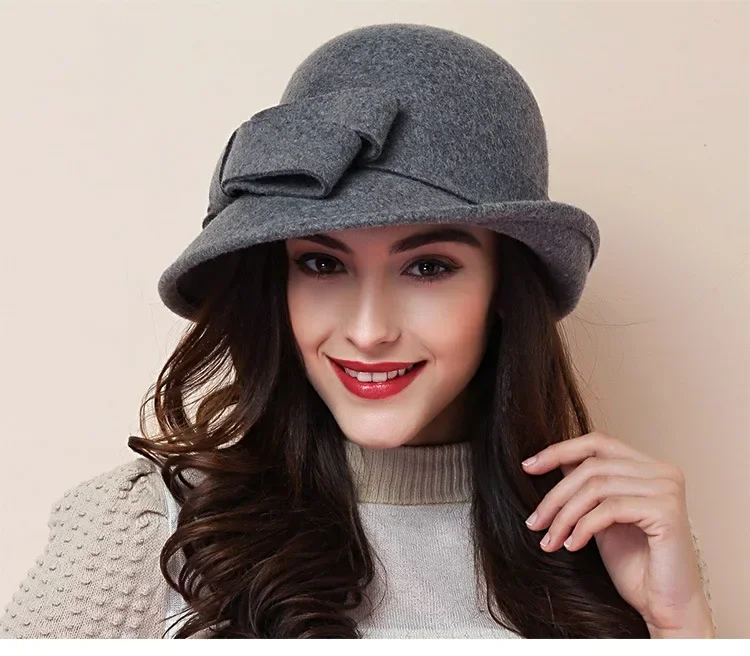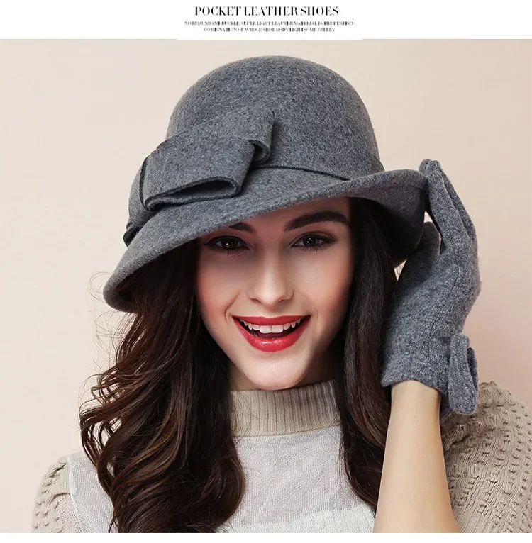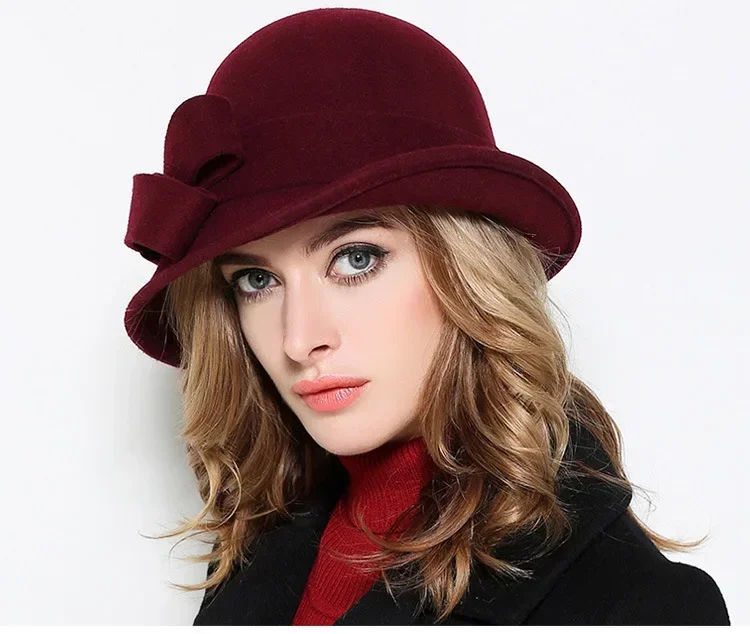 Chapeau d'Hiver pour Femme - Style Gatsby Années 20 en Laine avec Fleur